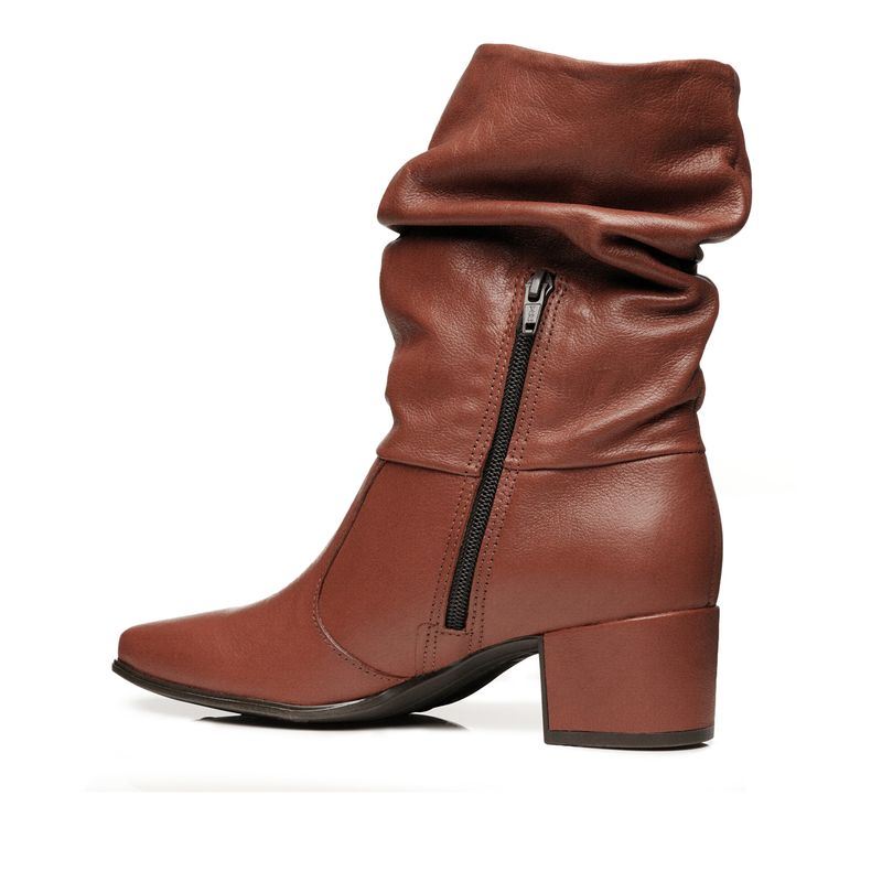 Essa bota em couro da linha Camille é muito confortável e estilosa, além de ser super tendência da estação, que é o estilo Slouch. Ela é feita com a Tecnologia SOFT TOUCH da Pegada, onde cada detalhe é pensado para deixa-la extremamente macia, desde a matéria prima até os processos de produção. São muitos diferenciais, começando pelo forro, que é de tecido atoalhado e toque suave. A palmilha é macia. Já o solado é antiderrapante e de alta flexibilidade, com um salto bloco de 5 cm, oferecendo conforto e versatilidade ao produto, e possui sistema Bubble Impact, com pequenas bolhas na parte inferior que reduzem os impactos. Além de tudo isso, as costuras utilizadas na sua produção são programadas (automáticas), assim não é necessário usar cola entre as partes do couro do cabedal, desta forma o couro continua com a sua maciez original e não fica endurecido. Tudo isso para deixar o calçado macio e confortável para o uso. O modelo ainda possui zíper na parte interior que facilita o calce.