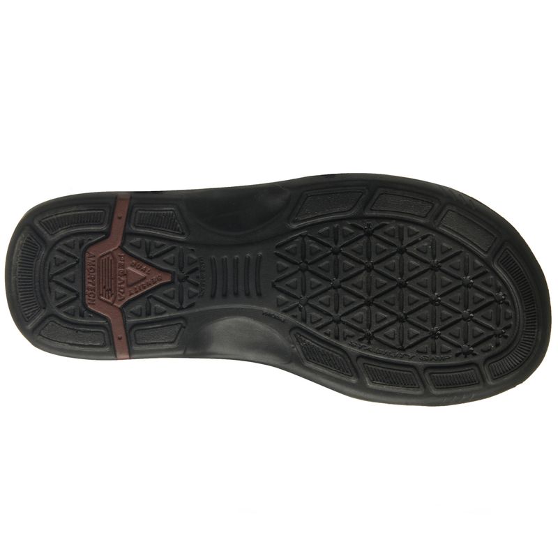 Esse chinelo é fabricado em couro, matéria prima de alta qualidade, resistência e durabilidade. O solado é leve e flexível, e conta ainda com o sistema de amortecimento AMORTECH, através de tubos que absorvem o impacto na regiao do calcanhar. A palmilha é anatômica feita em eva que se adapta ao formato do pé com massageadores triangulares.
