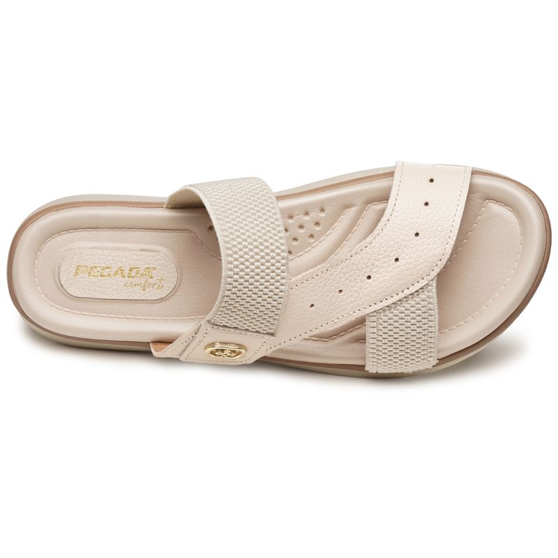Chinelo Pegada Feminino em Couro Off White 232840-02