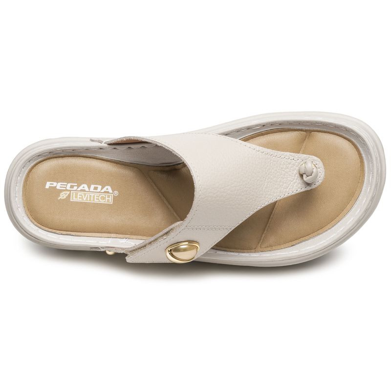 Chinelo Pegada Feminino em Couro Off White 234702-02
