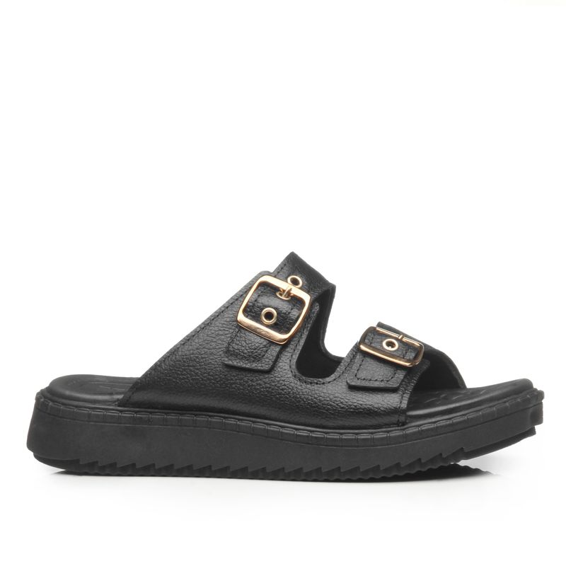 Chinelo Pegada Feminino em Couro Preto 233662-06