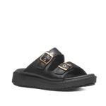 Esse chinelo em couro preto da linha Califórnia é muito confortável e estiloso. O solado é leve e flexível, com um saltinho flatform de 3,5 cm. Já a palmilha é super macia e se adapta aos contornos dos pés. Sem falar nos detalhes das duas fivelas, que são tendência de moda e dão um charme no visual do calçado. É perfeito para arrasar nos looks de verão com muito conforto.