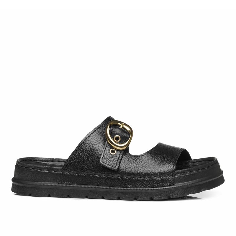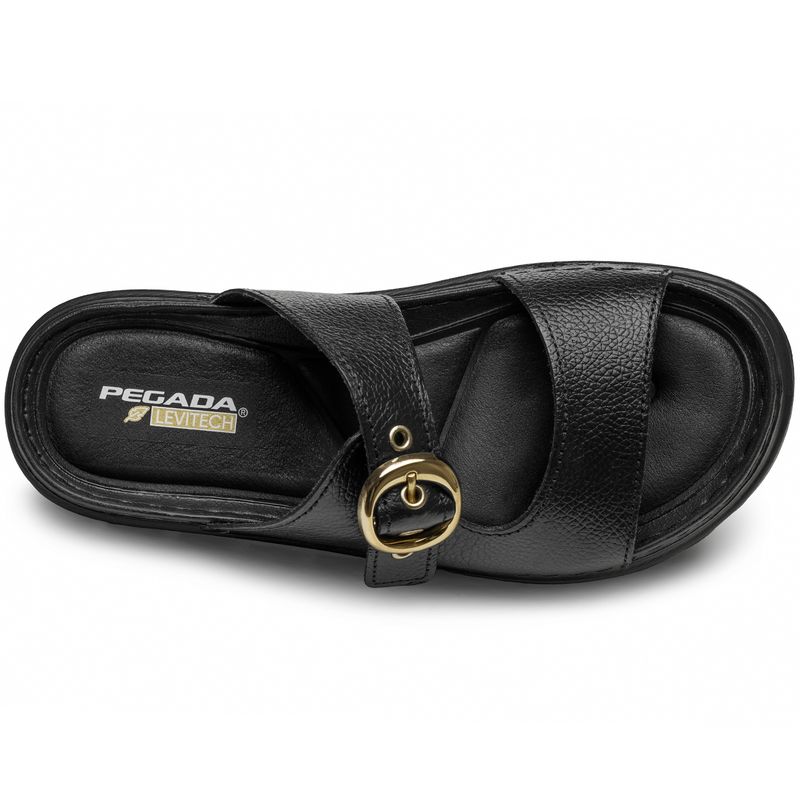Chinelo Pegada Feminino em Couro Preto 234701-03