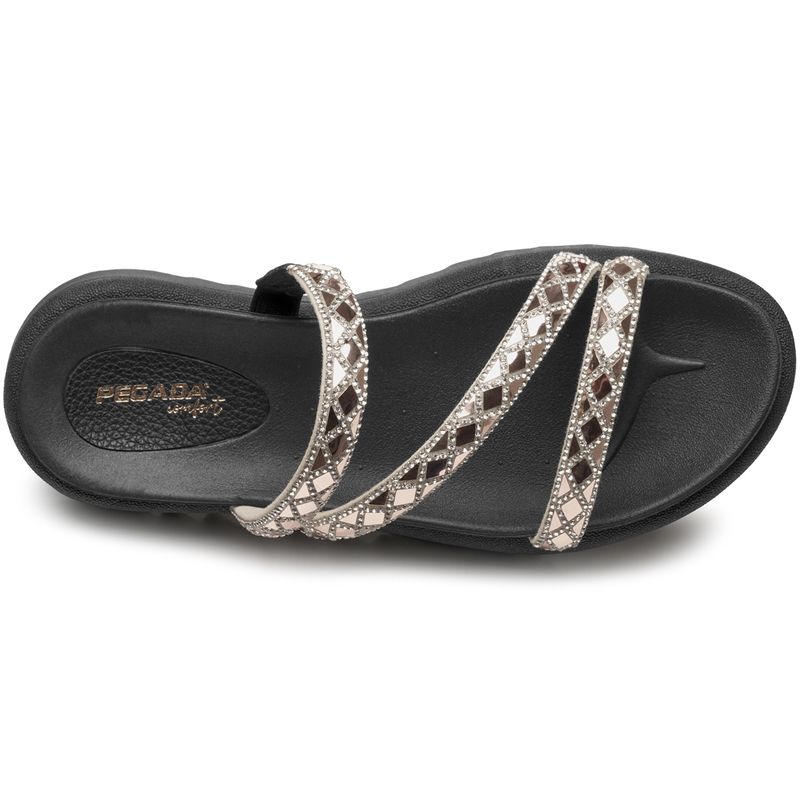 Esse chinelo da linha Veneza da Pegada é super confortável e estiloso. A palmilha é muito macia e se adapta aos contornos dos pés. Já o solado é leve, extremamente macio e flexível, tem 4 cm e é estilo flatform, uma tendência muito forte na moda atual. Os detalhes das tiras com brilhos faz toda a diferença e dão um charme ao visual do produto. A linha Veneza é estilo que reluz, afinal é o nome de uma cidade que inspira a beleza e o brilho em diversas formas, desde a luz do sol refletida sobre as águas, até as famosas máscaras do carnaval italiano que é típico na cidade.