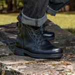 Essa bota em couro preto da linha Everest é robusta e muito confortável. O forro é de tecido atoalhado e toque suave. O solado é leve e flexível. Já a palmilha é feita em material macio e possui a nossa Tecnologia de conforto AMORTECH, com um amortecedor que reduz os impactos na região do calcanhar. Além de tudo isso esse modelo ainda possui zíper na parte externa trazendo muita praticidade na hora de calçar.