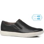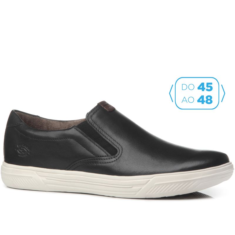 Assim como toda a linha Plus Size da Pegada, esse tênis em couro preto possui numeração especial, do 45 ao 48. Ele é da linha Flight, super leve e estiloso. O forro em tecido espumado garante o conforto e a absorção de suor, características necessárias para mantiver o pé seco e arejado. Já a palmilha é macia e confortável. A linha Flight é leveza para ir mais longe, isso porque o solado conta com a nossa tecnologia LEVITECH, deixando o calçado superleve, pesando menos de 250 gramas por pé, que proporciona maior leveza e conforto ao caminhar. Além de tudo isso o modelo ainda conta com o nosso sistema "Calce Fácil", com elásticos nas laterais que facilitam o calce e o ajuste aos pés. É perfeito para quem procura por estilo sem abrir mão do conforto.