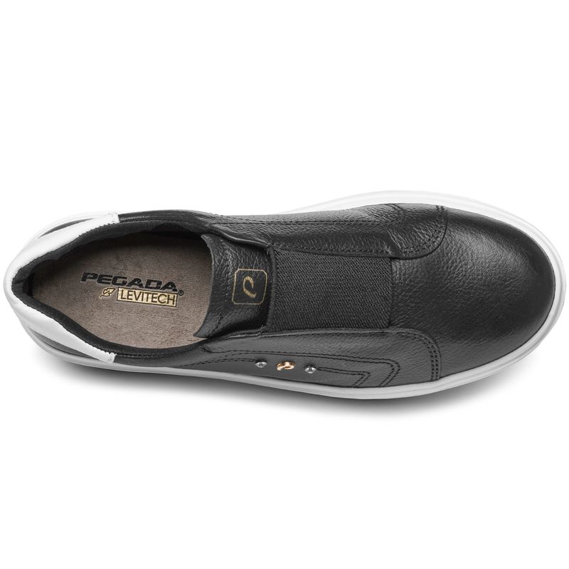 Esse slip on em couro Preto da linha Eva é super estiloso e confortável. A leveza dos tênis da linha Eva acompanham você em qualquer destino, eles contam com a tecnologia LEVITECH, pesando menos de 250 gramas por pé, o que proporciona muito mais leveza e conforto no caminhar. Sua palmilha é feita em material macio. Já o solado é flatform, tem 3,5cm de altura e é uma tendência de estilo e conforto que nunca sai de moda. Além de tudo isso, o modelo possui o sistema "CALCE FÁCIL" da Pegada, com um elástico mais largo, que além de ser super estiloso traz praticidade na hora de calçar. É perfeito para as mulheres dinâmicas, que não têm tempo a perder e querem ganhar em estilo, conforto e atitude.